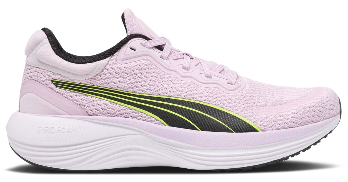 Смелый дизайн сочетает в себе нежные оттенки Grape Mist с энергичными акцентами Black Lime, что несомненно выделит вас из толпы и подчеркнет ваш индивидуальный стиль. Благодаря передовым технологиям, разработанным специалистами Puma, обувь гарантирует максимальный комфорт при любой активности. Легкая, но прочная подошва обеспечивает отличное сцепление с поверхностью и амортизацию, позволяя вам чувствовать уверенность в каждом шаге.
